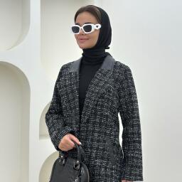 پالتو پارچه شانل لمه دار یقه آرشال خرج کار چرم آستردار pd168-7