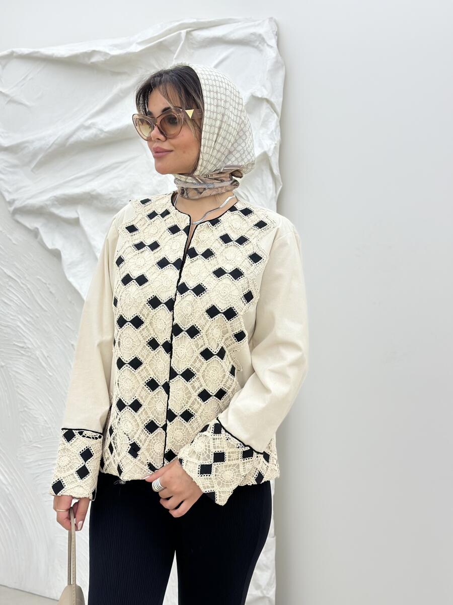 پالتو شانل لمه دار خرج کار چرم آستین پاگون دار آستردار pd95-5