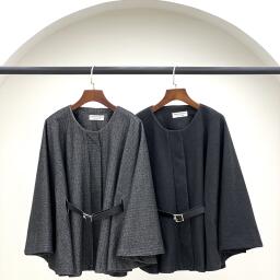 پالتو موهر شنلی طرح جناغی به همراه کمربند pd627-14