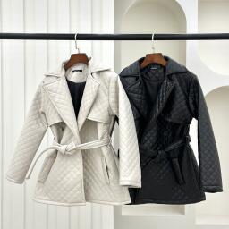 پالتو طرح چرم کمربنددار آستردار pd195-15