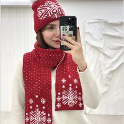 ست 2تیکه کلاه و شال گردن طرح کریسمسی 2رو id14