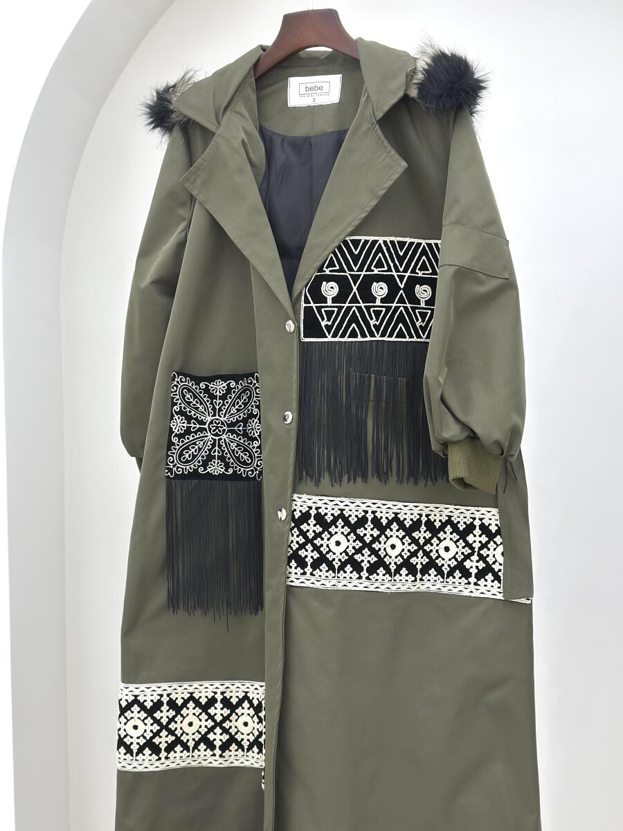 بارانی مزونی خرج کار اپلیکه دوزی شده کلاه دار آستردار pd76-1