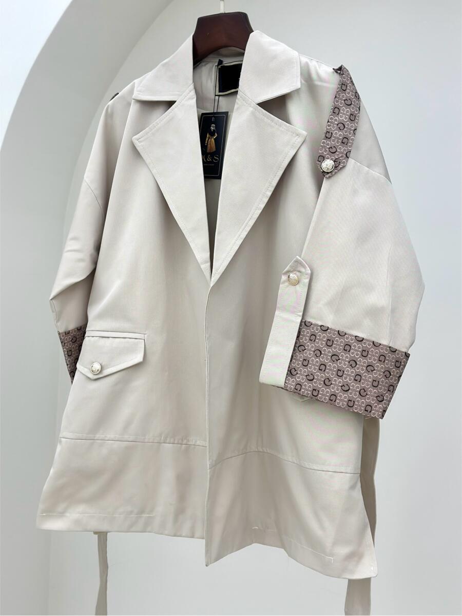 بارانی کتان تی سی خرج کار طرح دار جیب پاکتی آستردار pd183-7
